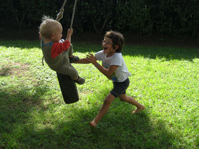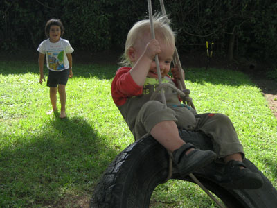 Cléobule et Titus aident à monter notre tente moustiquaire...