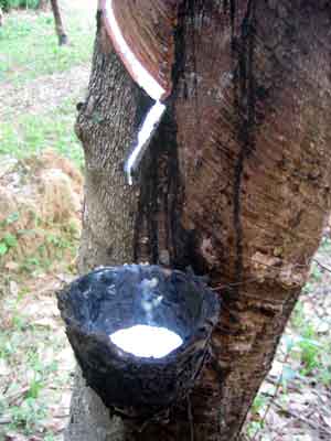 récolte de la sève des arbres pour le caoutchouc