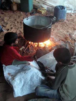 une tente pour sa famille (2 femmes et 10 enfants) pour y passer un mois de vacances. Nous sommes les bienvenues pour
