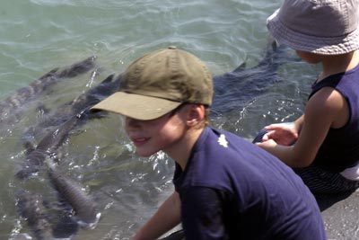 les poissons viennent chercher leurs morceaux de pain à chaque marée haute
