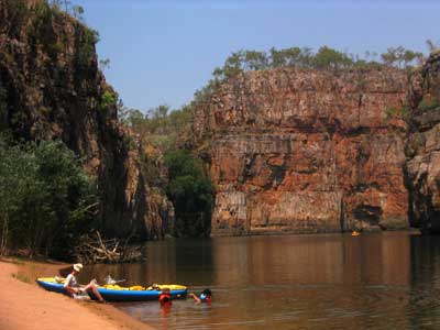 première ville (Katherine). Je laisse Nathalie, Pollux et Titus par 43 degrés au bord de la route