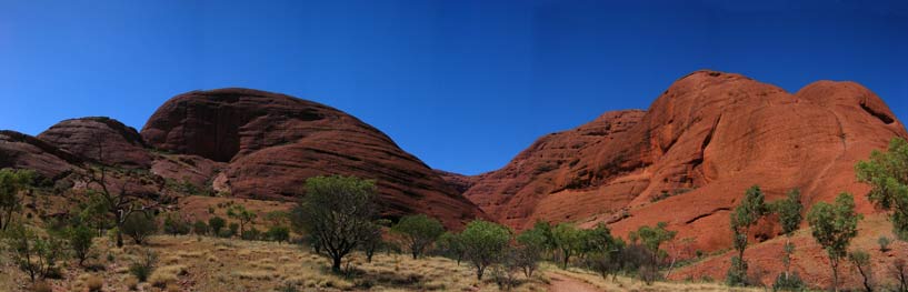 à 50 kilomètres d'Ayers Rock se dressent un groupe de rochers encore plus grand : les Olgas. Ils sont