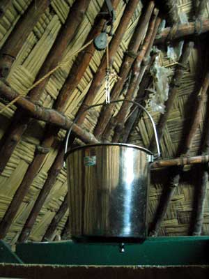 le système de douche avec poulie et sceau à remplir...