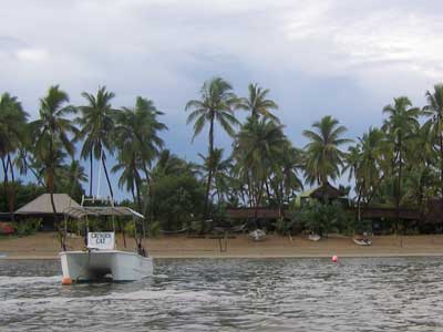 un petit stop sur une de ces île. Nous nous arrêtons aux ïles Fidji. Par contre, la météo n'est pas avec nous.